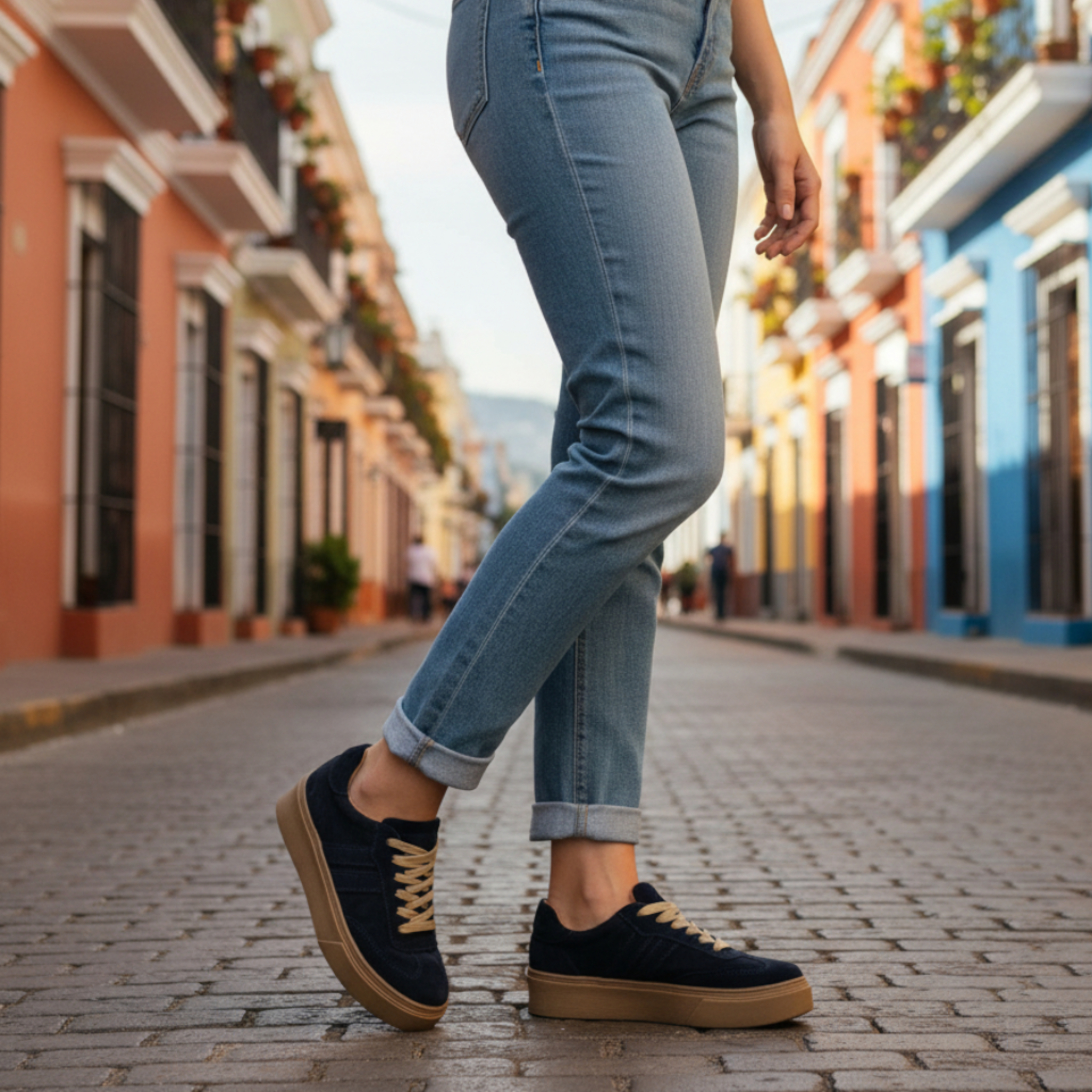 Zapatillas urbanas 100% cuero, con forrado de badana y planta de 3 cm.