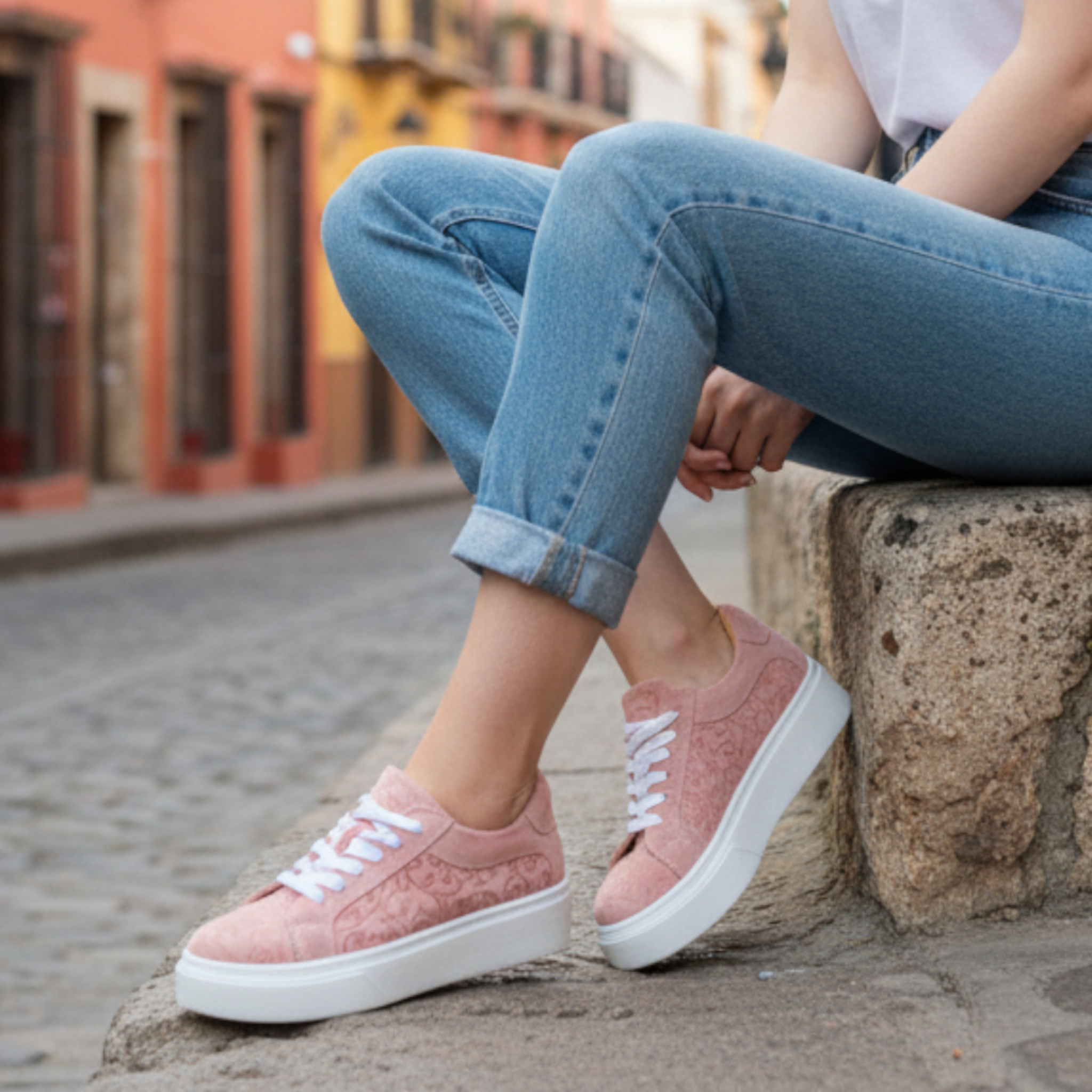 Zapatillas urbanas 100% cuero, con forrado interno de badana natural y plataforma de 6 cm.