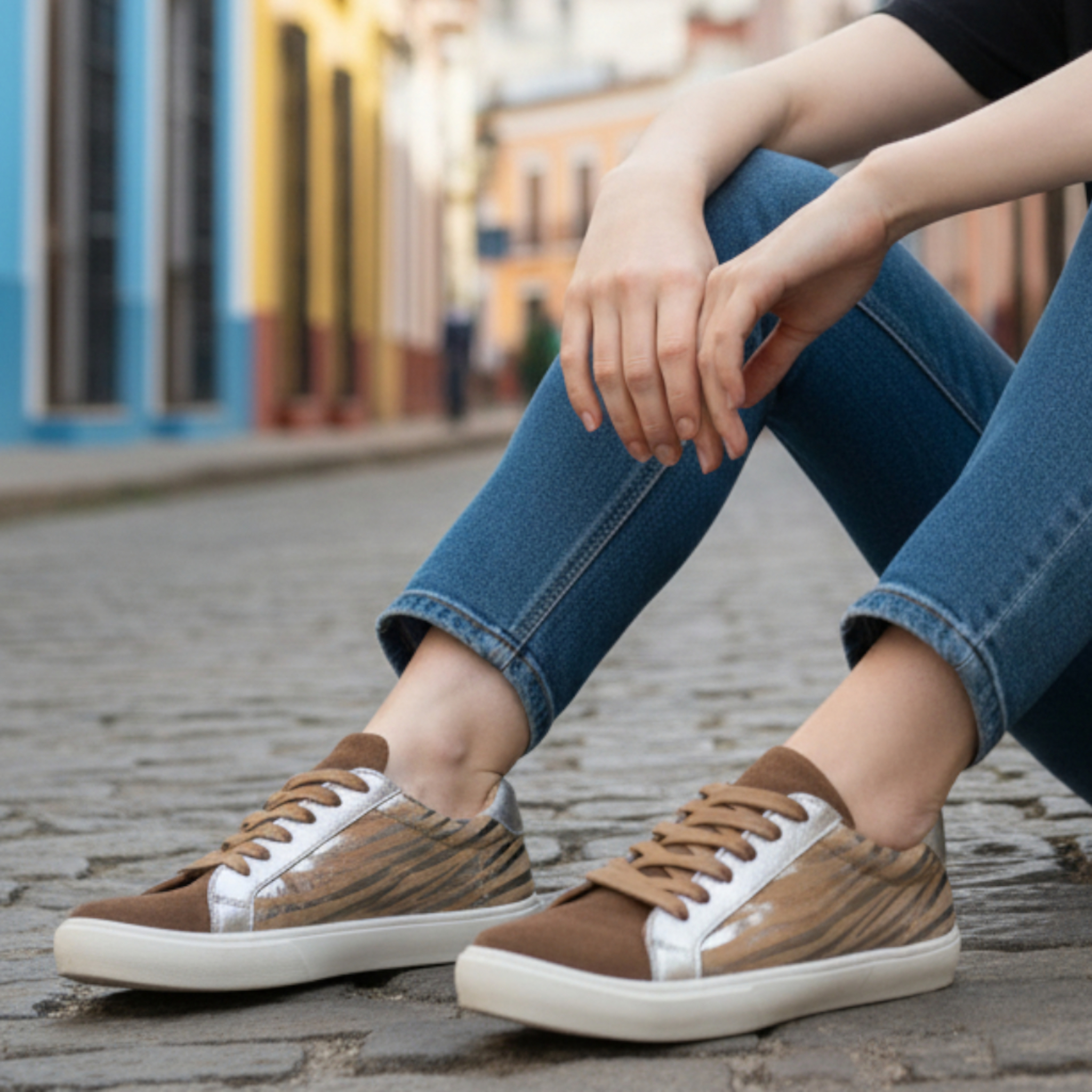 Zapatillas urbanas 100% cuero, con forrado interno de badana natural y plataforma de 1 cm.