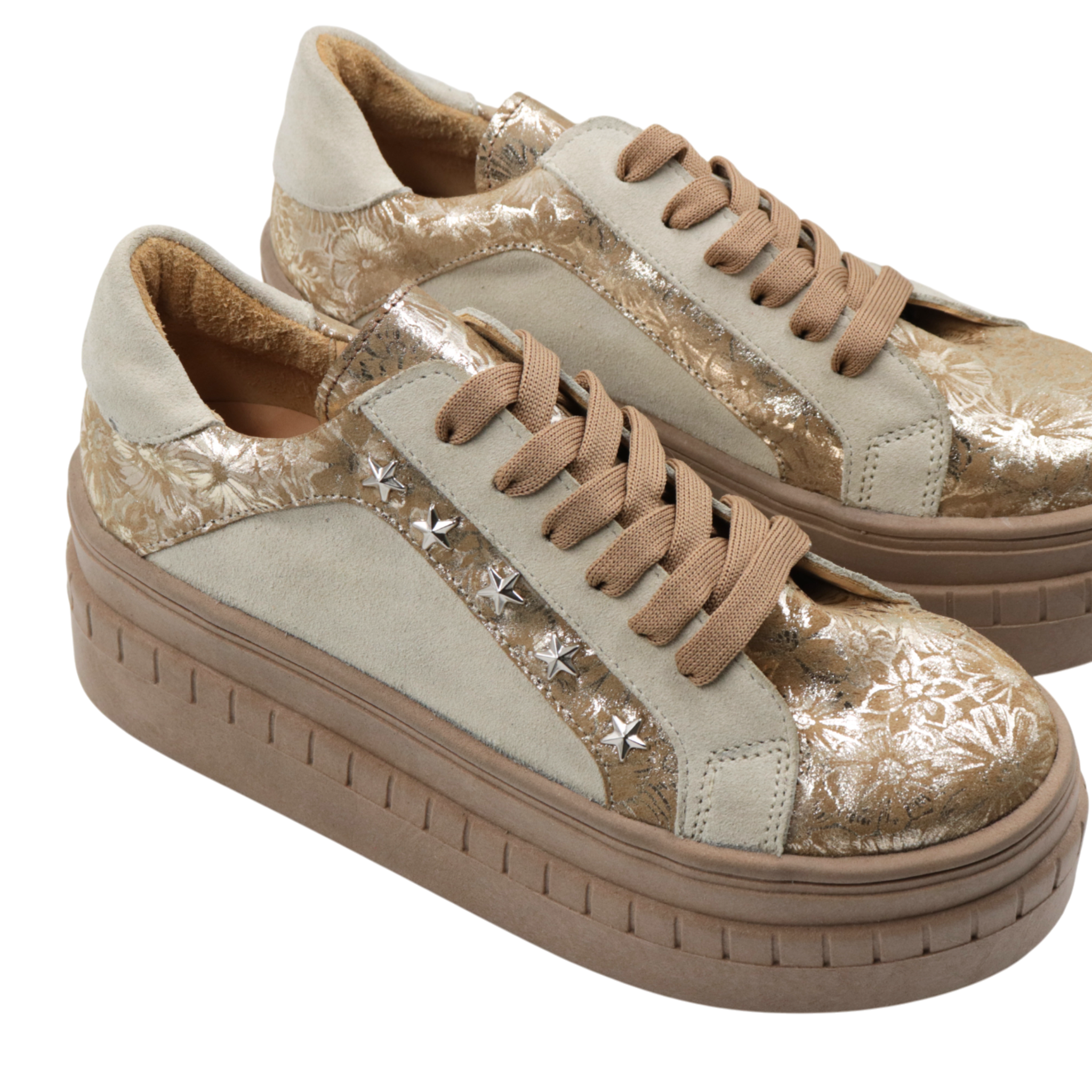 Zapatillas urbanas 100% cuero, con forrado interior de badana natural y plataforma de 5 cm.