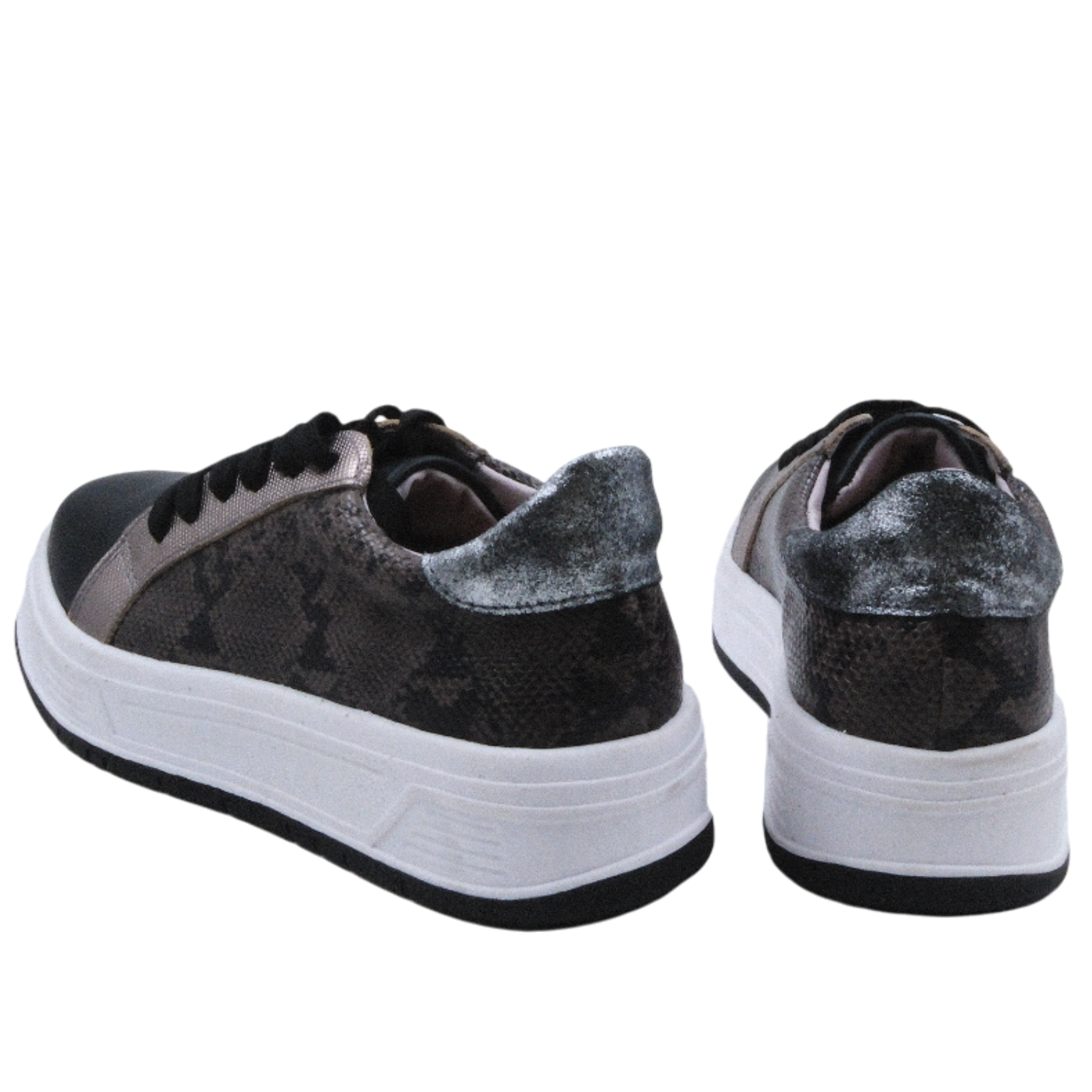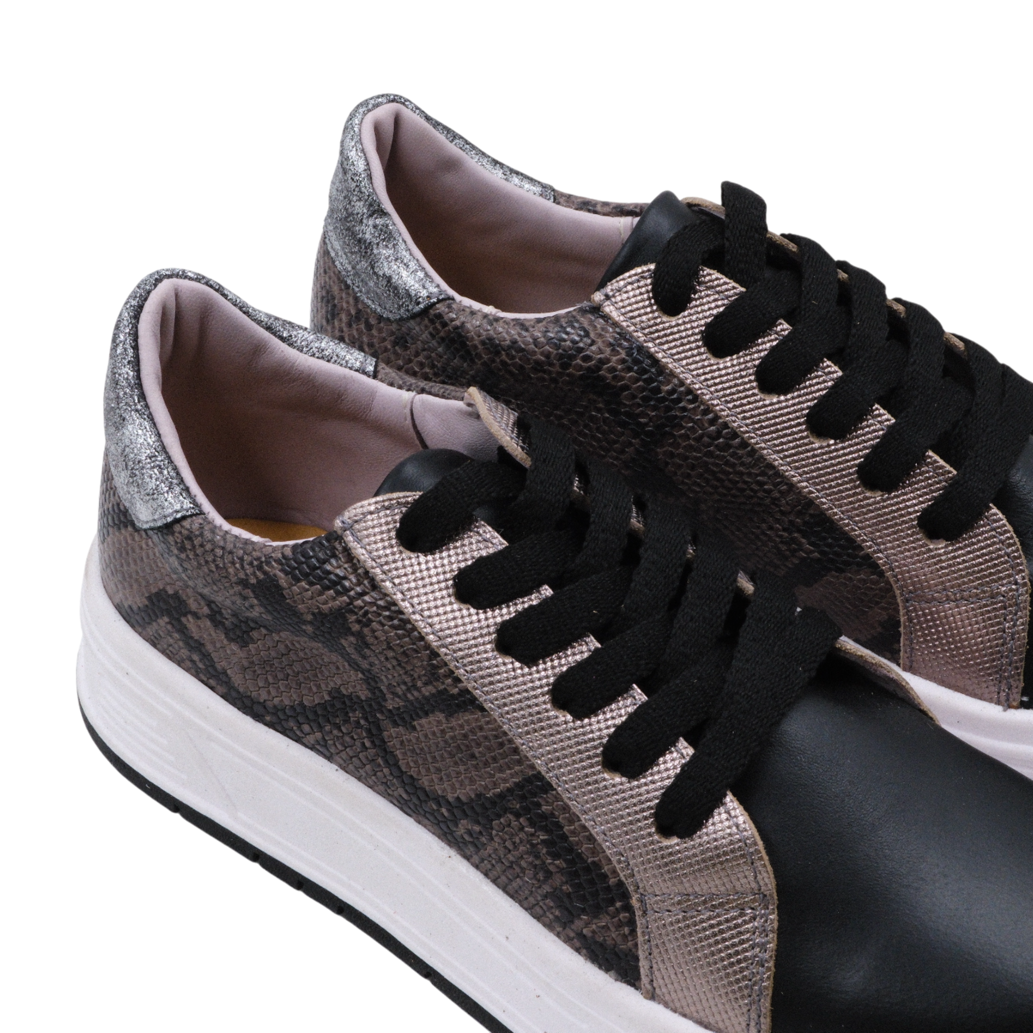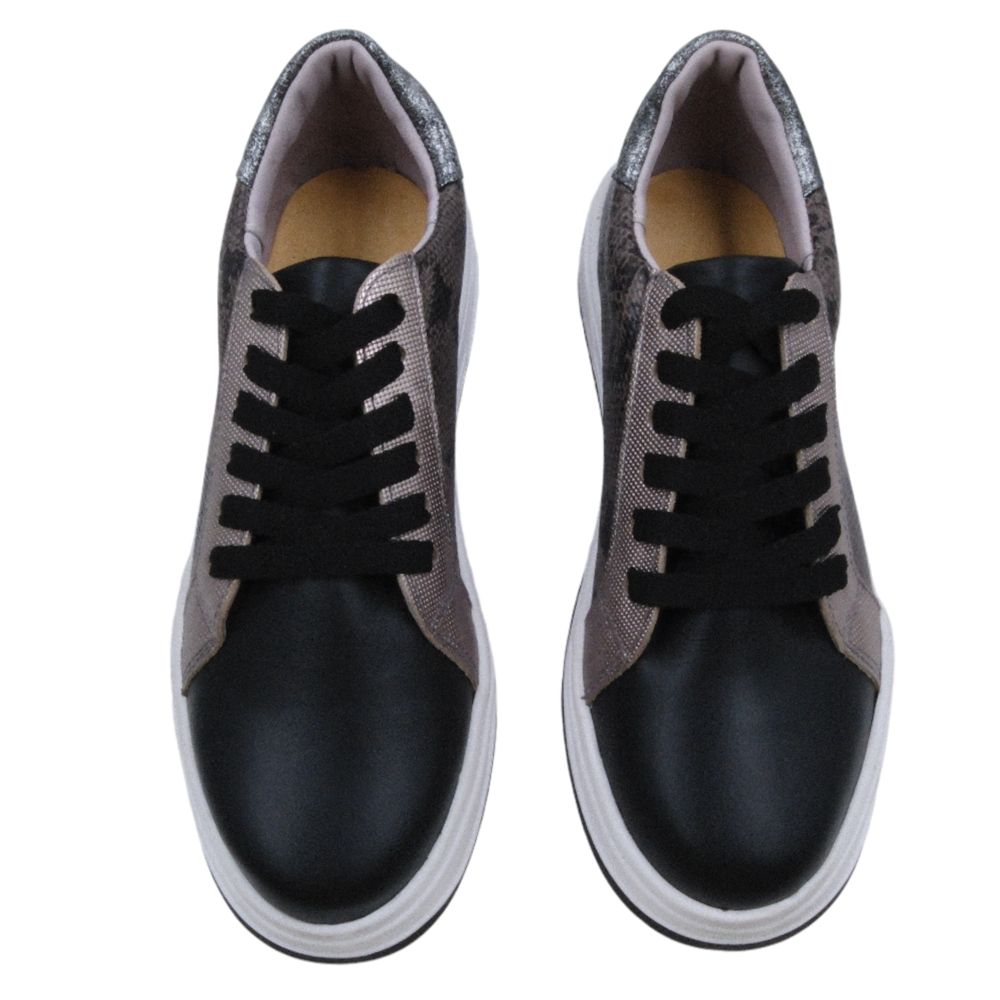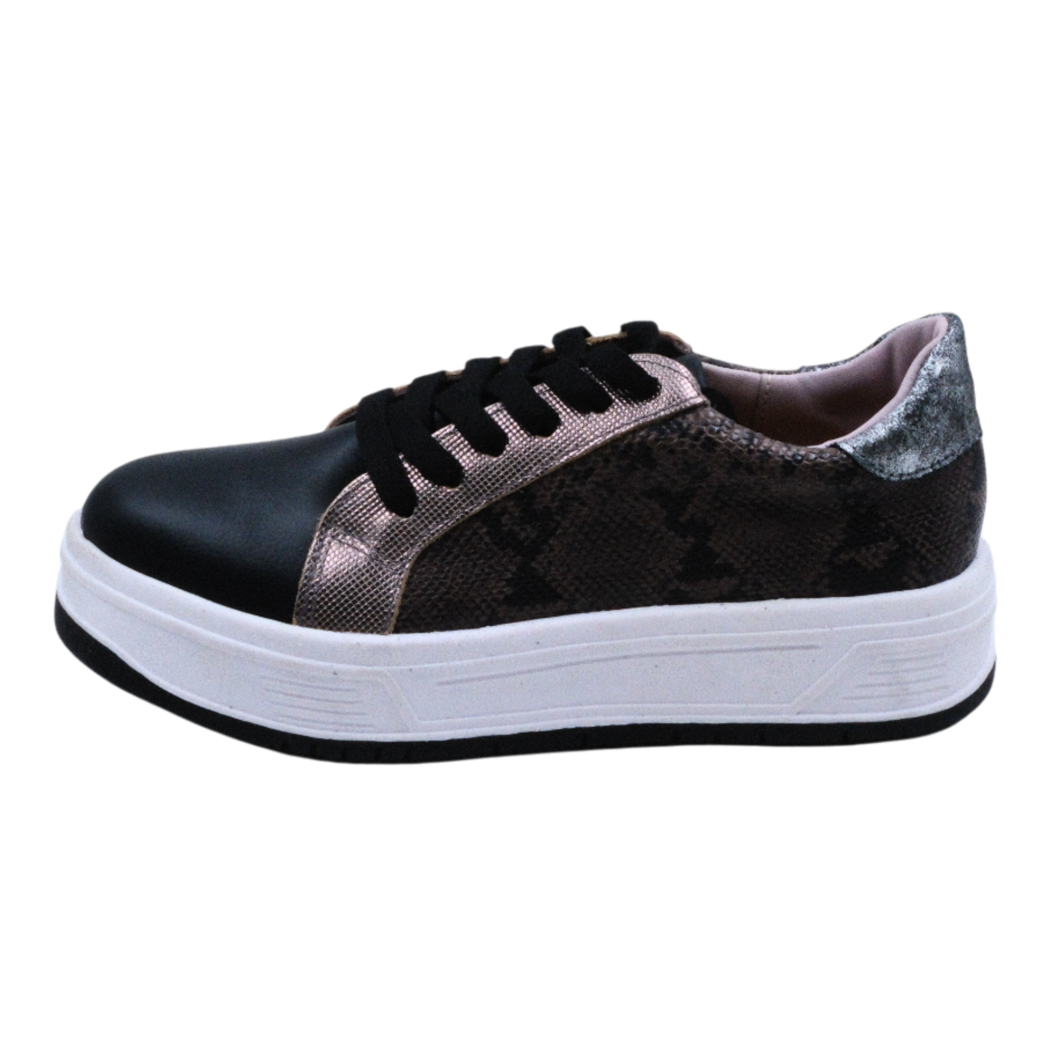 Zapatillas urbanas 100% cuero, con forrado de bandana natural y plataforma de 3 cm.